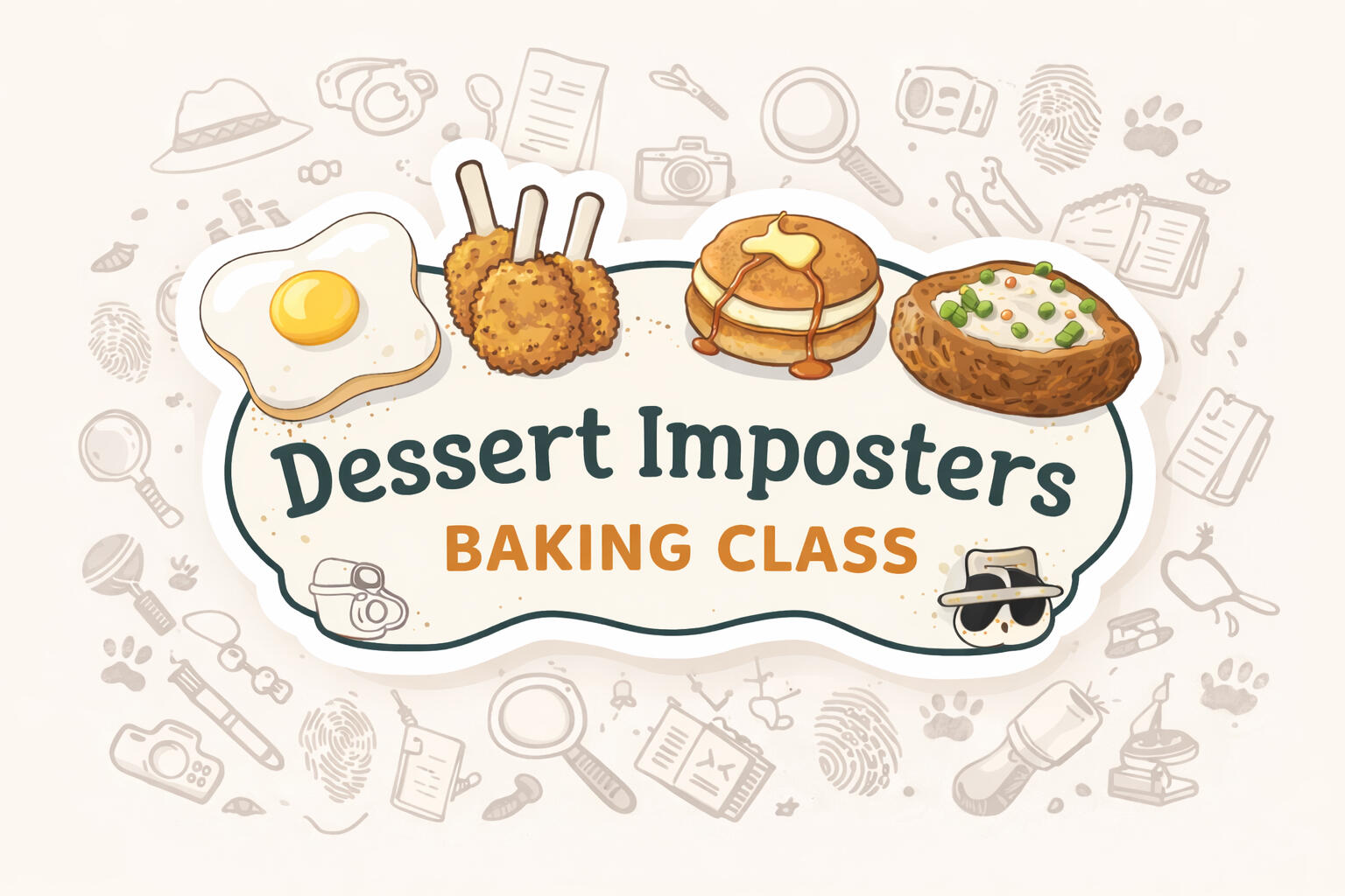 Join us for a one day version of our Dessert Imposters Baking Camp, where sweet treats cleverly disguise themselves as breakfast and dinner favorites. Bakers will create a breakfast of Fried Egg Cookies and Pancake & Syrup Whoopie Pies, OR dinner with Fried Chicken Cake Pops and Baked Potatoes made from Sweet Potato Bread - they'll have to wait and see which one! Along the way, they’ll bake from scratch, learn new kitchen and decorating skills, play games, enjoy lunch (included), and taste-test their creations. It’s creative, hands-on fun with a delicious twist.