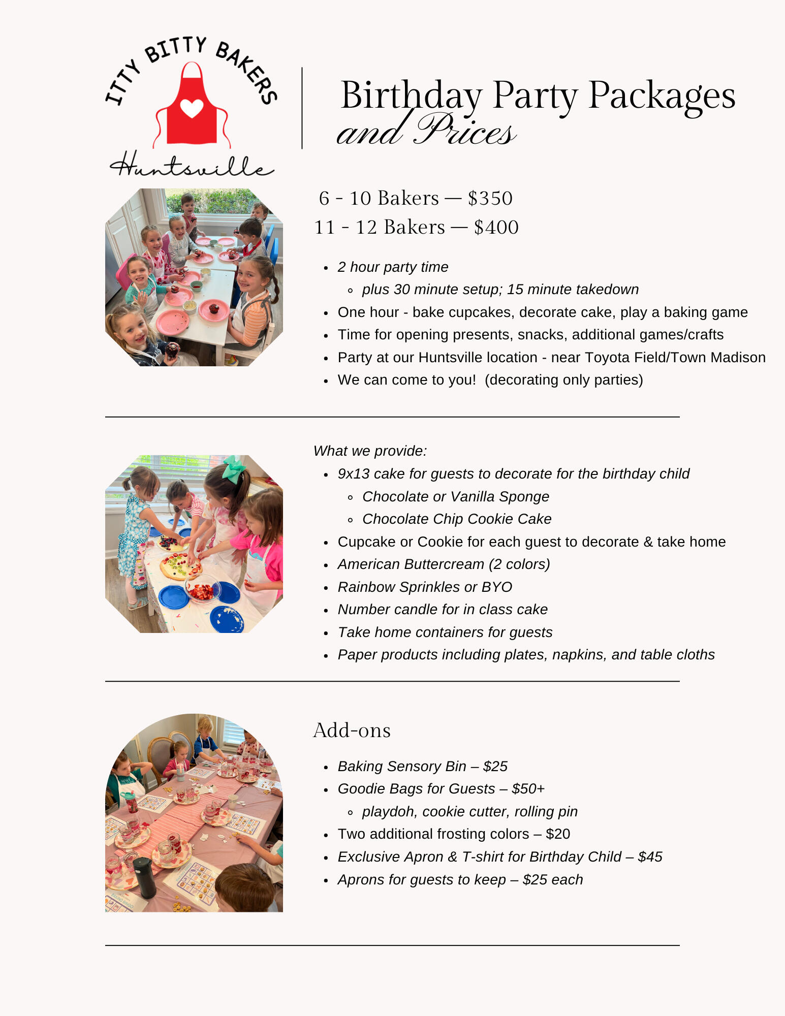 Have your baking party at our Huntsville location!
