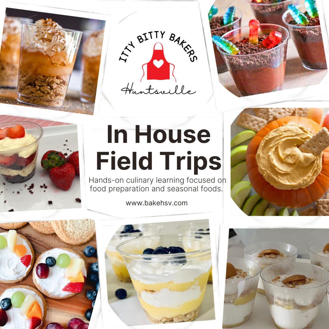 We are a woman-owned small business that specializes in educational baking classes in Huntsville, AL. With our foundations in baking classes for children ages 3-12, we now offer classes for teens and adults.Our classes are hands-on and small group. Together we follow a recipe and create something delicious. We believe in food exposure and love introducing kids to new ingredients. Our kitchen is a safe place for kids to make a mess or try something new. Classes include cooking, meal preparation, and cake decorating, with a primary focus on baking.We offer monthly classes, private classes for you and your friends, birthday parties for child, and in-house field trips for schools, daycares, libraries, and more!